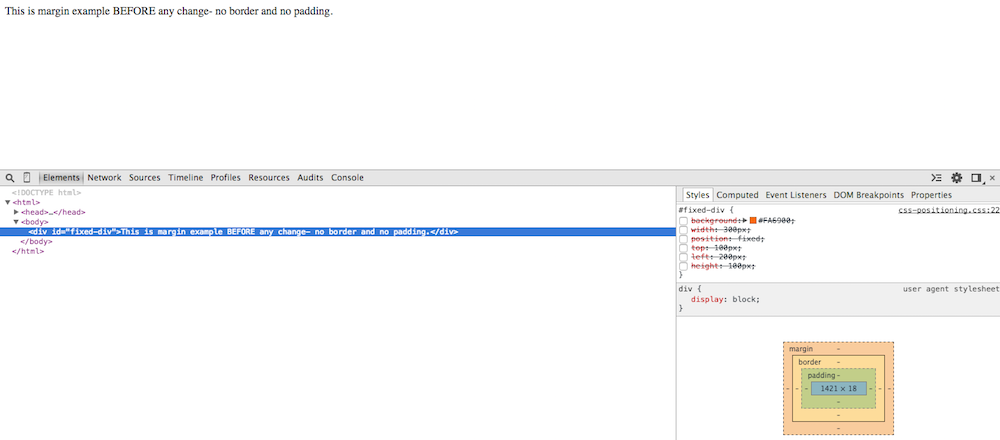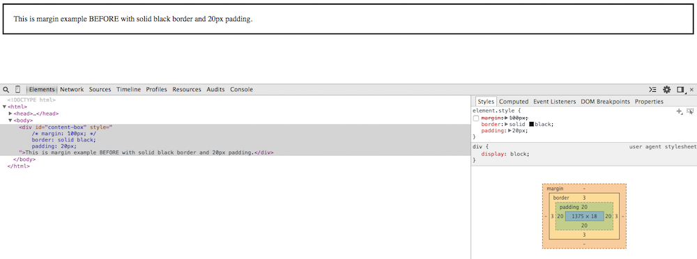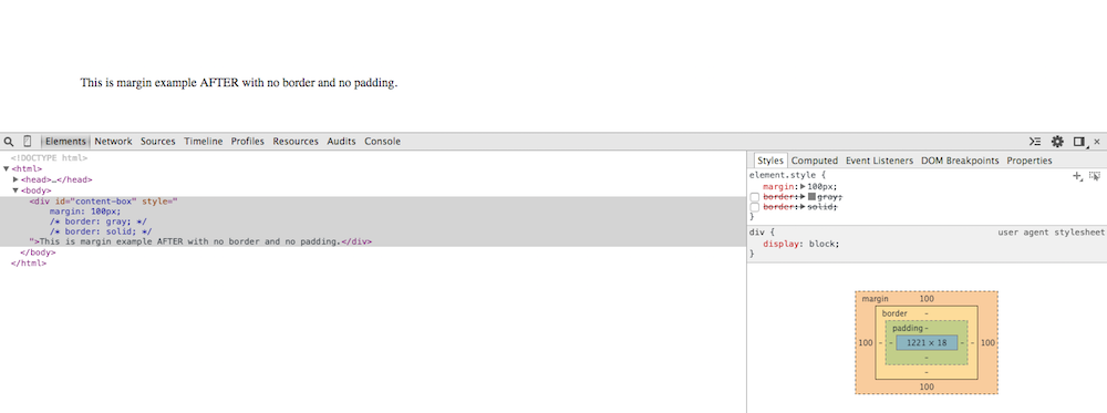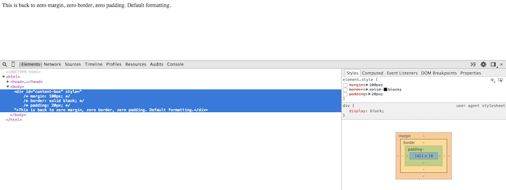 To go a step further, I removed all modifications- margin, border, AND padding. We're back to the element in all of its default settings.